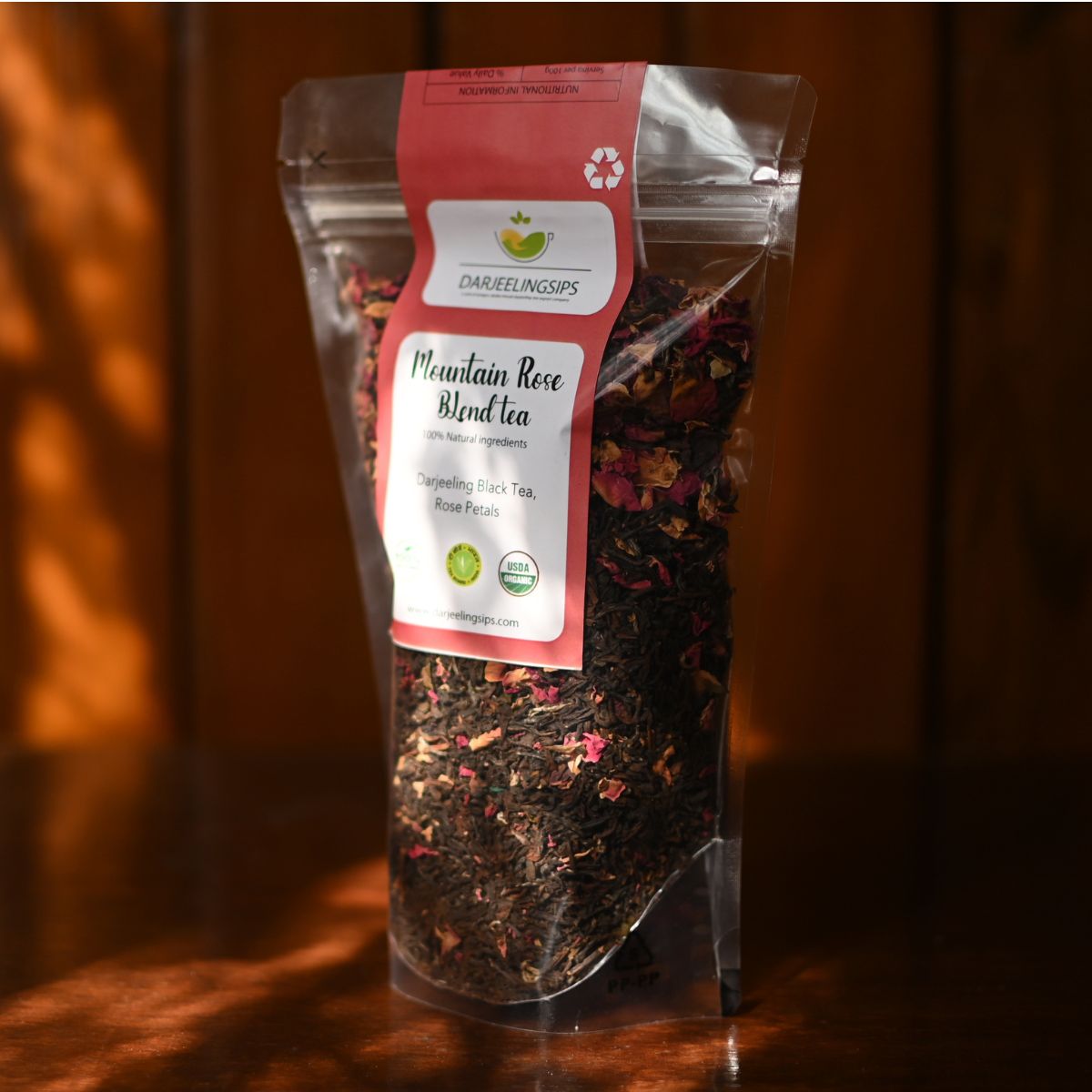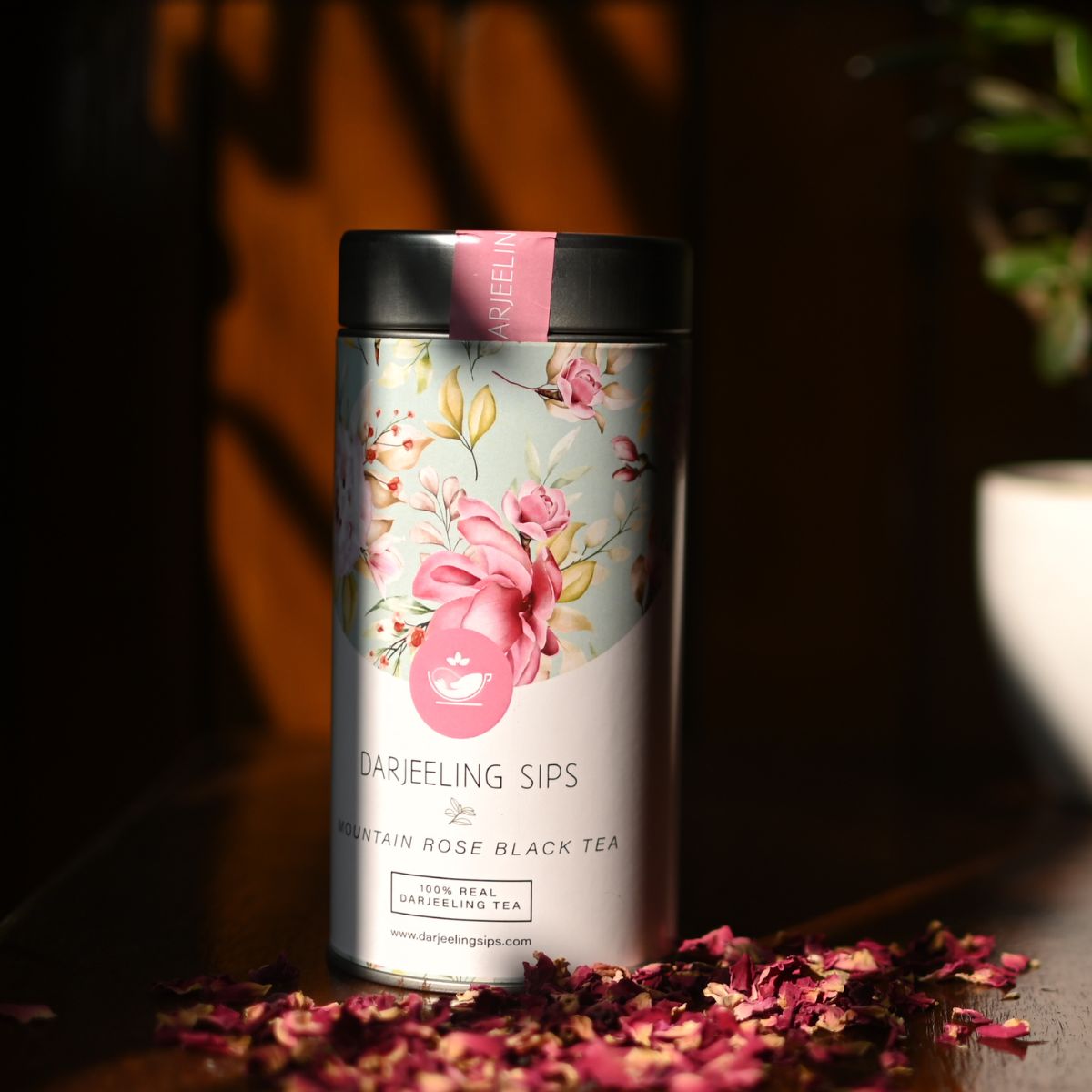 Indulge in the exquisite fusion of two timeless classics with our Mountain Rose Black Tea—a blend that marries the elegance of Darjeeling tea with the romance of delicate rose petals. This enchanting union promises a tea experience that transports you to the ethereal beauty of the mountains and the allure of blooming roses.